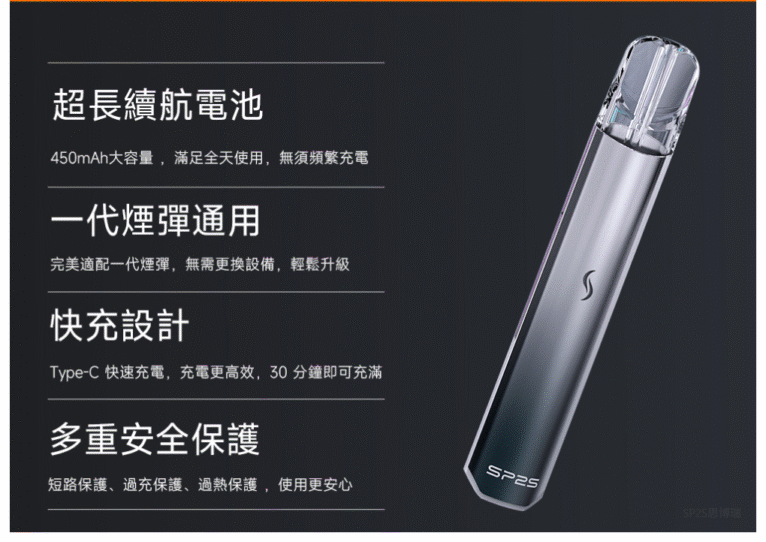 SP2S國際版主機是一款以「廣泛兼容」為主要特點的電子煙主機,其對多品牌一代煙彈的支持、金屬機身質感、Type-C快充及LED燈效設計,滿足了部分用戶電子菸主機通用性、耐用度與個性化外觀的需求。